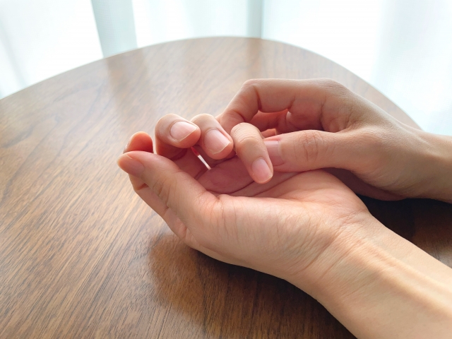 無理に指を伸ばす・引っ張ることは、肥厚した腱に過剰な負荷をかけて、炎症を悪化させるリスクがあります。症状が強い時期に固まった指を他の手で強引に伸ばすことは、絶対に避けてください。患部を強くもむ・押し続けることも同様で、炎症部位への直接的な圧迫・摩擦は症状を強める可能性があります。