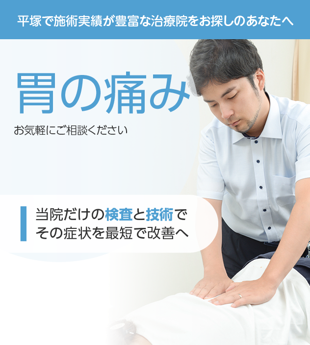 まずはあなたの胃の痛みの原因を検査によって明らかにします。施術だけでも一時的に症状を緩和させることはできますが、原因を正しく解明できていなければ、根本から改善することはできないからです。