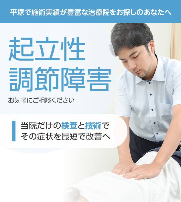 起立性調節障害に大きく関係する自律神経は、天候や生活環境やストレス、体調など様々な要因の影響を受けるため、症状が日によって変化します。当院では、その時々の状態に合わせた施術を行い、変化する症状にも柔軟に対応しています。症状の真の原因を解明し、その人に適切な施術を行うことで初めて、根本的な改善が出来ます。